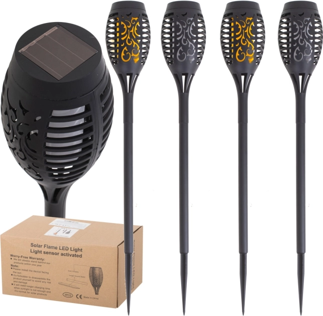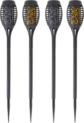 Sættet indeholder 4 stk. lamper, så du nemt kan markere en sti eller belyse et siddeområde. Det skarpe jordspyd sikrer hurtig og stabil montering. Det robuste plastdesign er ideelt til udendørs brug.