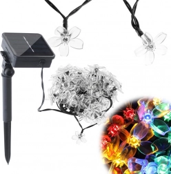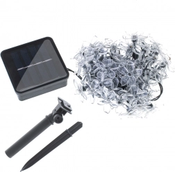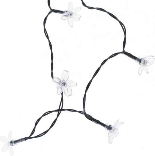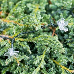 Den dekorative solcelle-lyskæde med gennemsigtige blomster giver din have en magisk atmosfære hver nat. Panelet samler solenergi om dagen, og efter mørkets frembrud tændes lysene automatisk. Den mørkegrønne kabel forsvinder i bevoksningen, så kun effekten af de blidt lysende blomster træder frem.