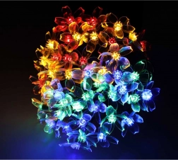 De gennemsigtige blomster skaber et blidt dekorativt lys i levende farver. De passer flot ind blandt planterne og giver rummet en romantisk stemning.