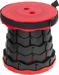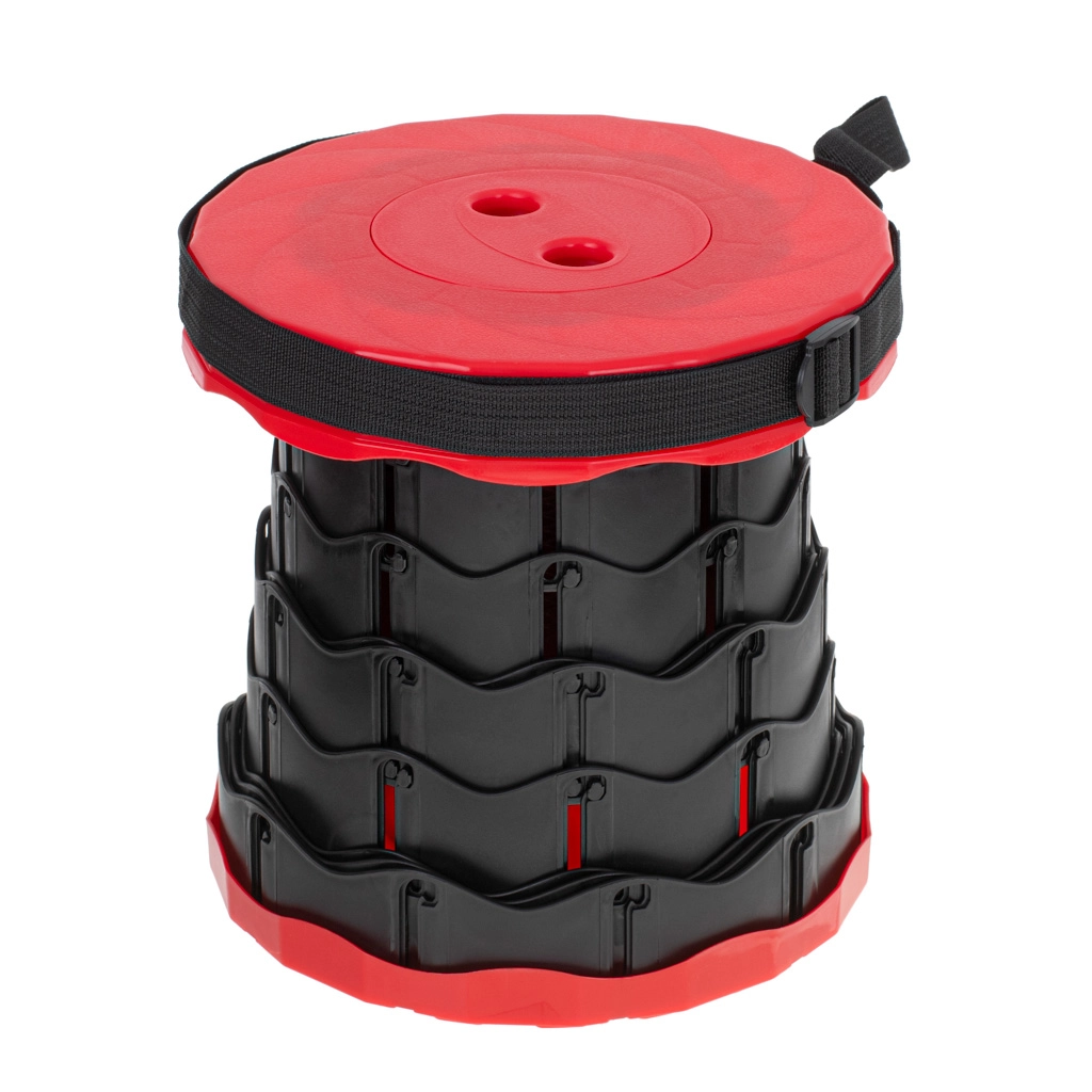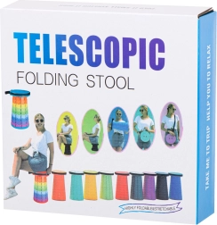 Denne teleskopiske stol foldes ud på et øjeblik – grib øverste og nederste del, drej, træk ud til ønsket højde og lad mekanismen låse. Den solide plastkonstruktion giver stabilitet og komfortabelt siddemiljø under alle forhold.