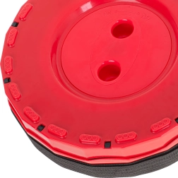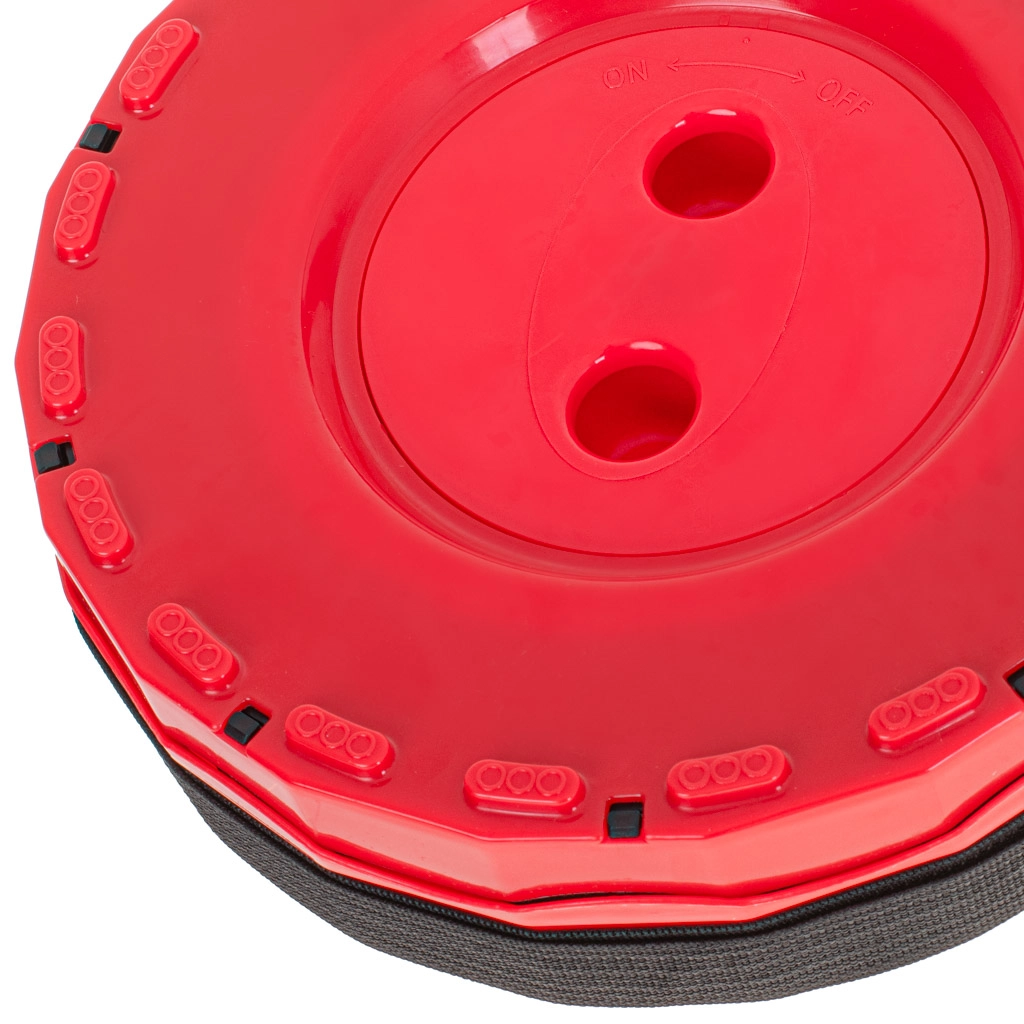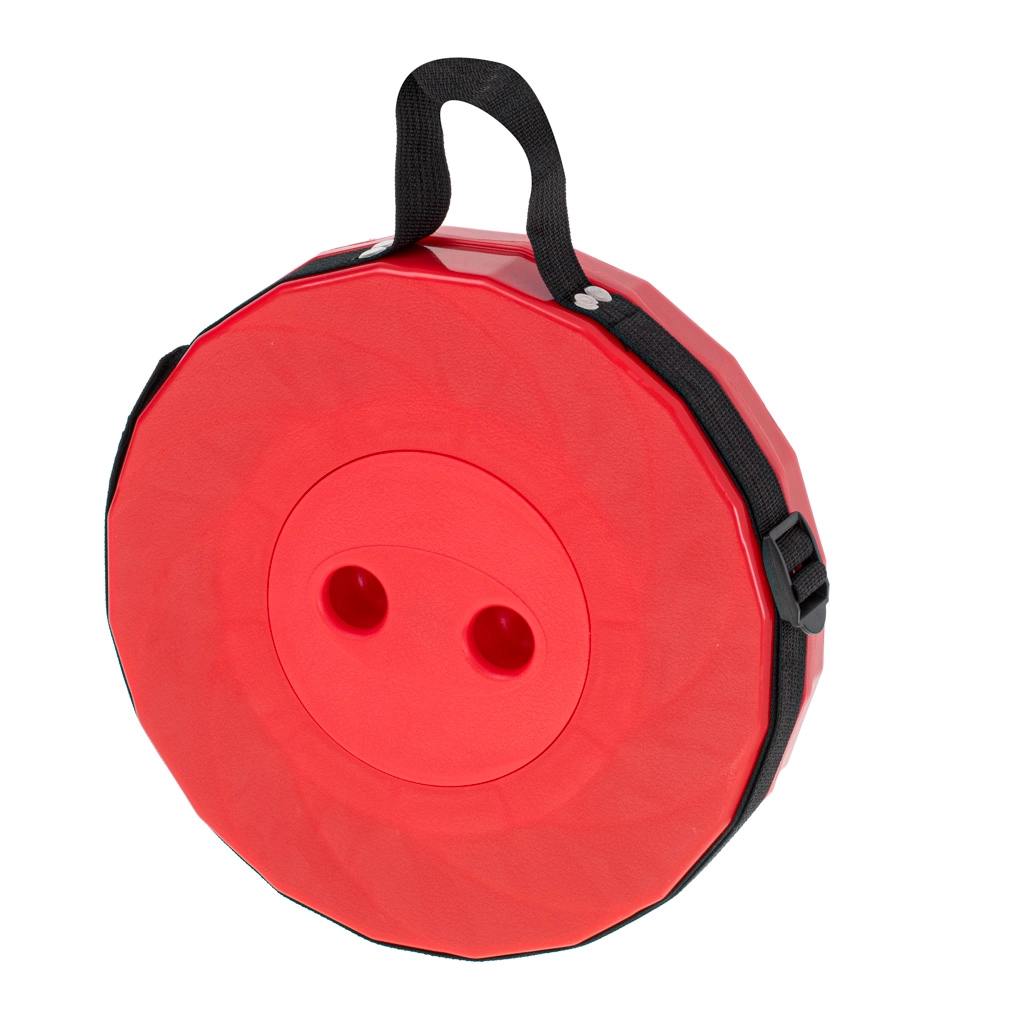 Ideel til camping, picnic, fiskeri, havearbejde eller når du venter i kø. Sammenklappet har den en flad, rund form, fylder minimalt, og med remmen kan den bæres over skulderen.