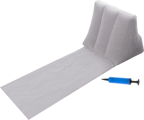 Den oppustelige kileformede ryglænspude aflaster ryg og nakke – ideel til læsning, afslapning og solbadning.