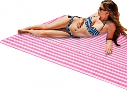Den lyse farve sikrer, at du nemt finder dit afslapningsområde, og takket være det praktiske håndtag kan du nemt bære det fra bilen til stranden. Tæppet er desuden sammenklappeligt og fylder ikke meget, når det ikke er i brug.