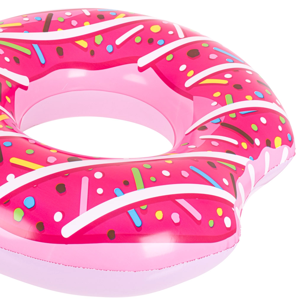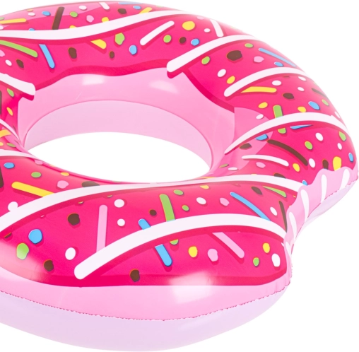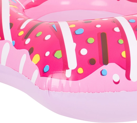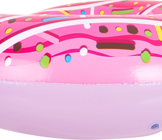 Det slidstærke materiale og den sikre form sikrer stabilitet på vandoverfladen, mens den markante rosa glasur med farvet krymmel sørger for, at du ikke bliver overset. I pakken medfølger også en reparationslap til hurtig udbedring af småskader.