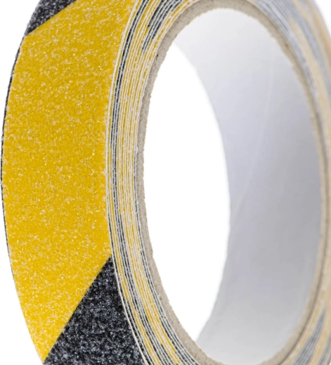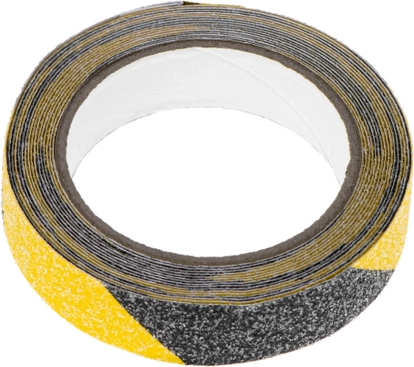 Installationen er hurtig: Rengør og affedt overfladen, fjern beskyttelsesfolien og pres tapen fast. Takket være vejrbestandighed er den ideel til trapper, gange, ramper, indgange, værksteder og lagre.