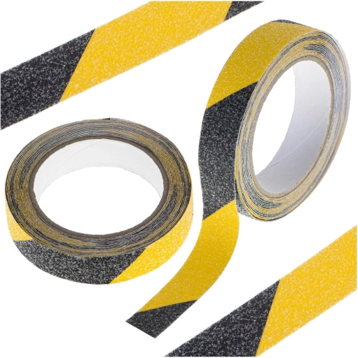 Denne skridsikre sikkerhedstape med et markant sort–gult mønster forebygger effektivt udskridninger i områder med meget trafik. Den grove, abrasive struktur sikrer sikkert fodfæste selv i fugtige miljøer, mens den holdbare lim hæfter stærkt på forskellige overflader.