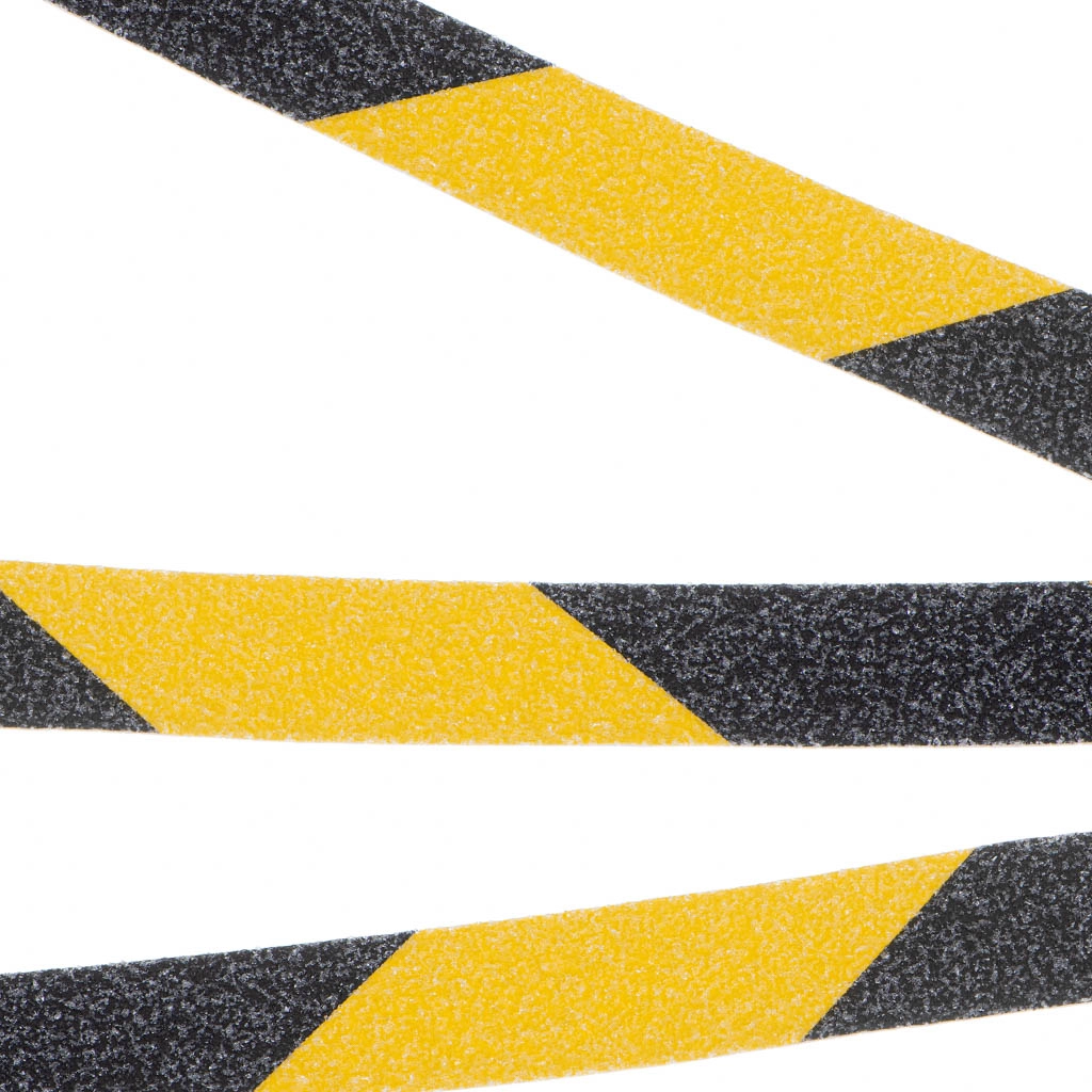 Kontrasterende sort–gule striber advarer om farezoner og øger samtidig friktionen for sikrere færden.