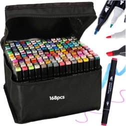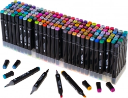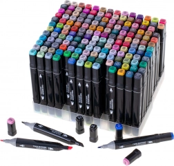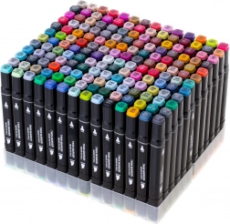 Dette komplette sæt tilbyder et imponerende spektrum af nuancer til enhver teknik. Den alkoholbaserede blæk tørrer hurtigt, dækker flot og giver jævne overgange uden uønskede striber. Hver marker har 2 spidser – en bred til flader og en fin til linjer og detaljer.