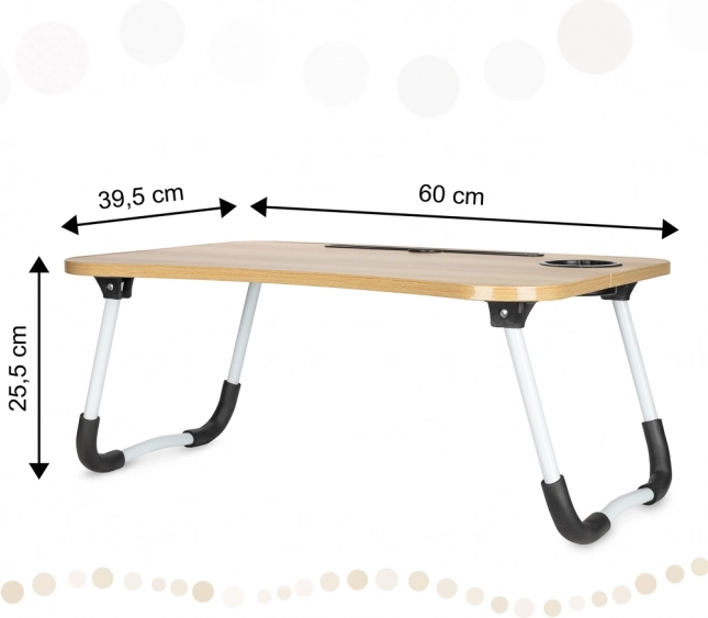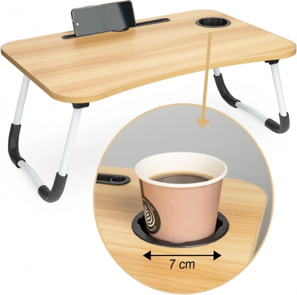 Bordet har en slot til tablet eller telefon og et hul til kabler, hvilket gør det mere praktisk. Hvis du leder efter den perfekte hjælp til komfortabelt arbejde fra ethvert sted, er dette sammenklappelige bord til bærbar computer det rette valg.