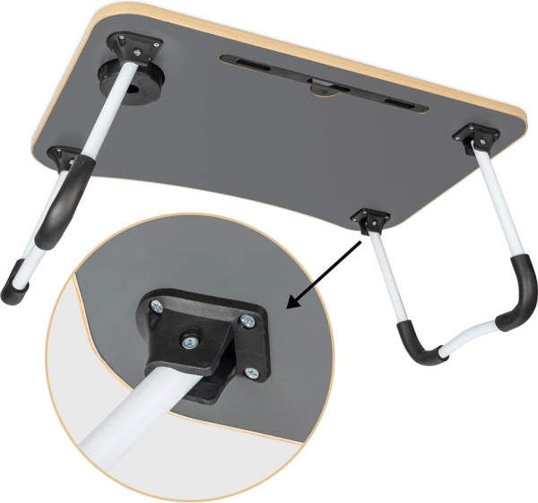 Nyd arbejdet hjemmefra med den bærbare sammenklappelige bord til bærbar computer, der giver dig maksimal komfort. Du kan sidde behageligt på sofaen, folde bordet ud og begynde at arbejde i en bekvem position. Designet fremmer god ventilation omkring enheden, hvilket forhindrer overophedning af den bærbare computer.