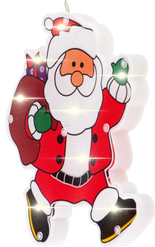 Denne jule-LED-dekoration med en munter Sankt Nikolaus og en sæk med gaver bringer højtidsmagi ind i hjemmet. Takket være den tosidede udførelse ser den flot ud fra begge sider af vinduet og lyser aftenerne op med et varmt skær. Den er ideel til stuen, børneværelset og til festlige fotos.