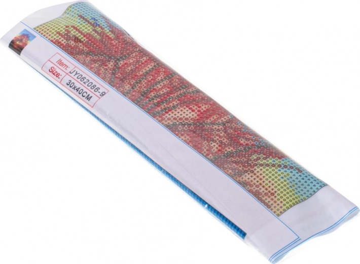 - Komplet sæt: lærred 30 × 40 cm, farvede sten, applikator, voks, sorteringsbakke.