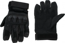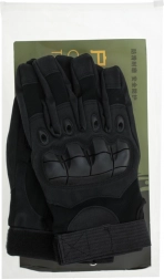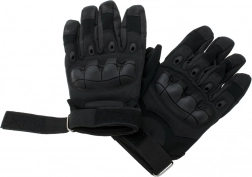 Disse sorte taktiske handsker er designet til krævende forhold. Lagdelte forstærkninger i håndfladen forbedrer grebssikkerheden og beskytter de mest belastede områder mod gennemslidning eller snit. Hård polstring på håndryggen beskytter knoerne mod stød, mens den justerbare håndledsstrop sikrer en stabil og sikker pasform uden ubehagelig forskydning.