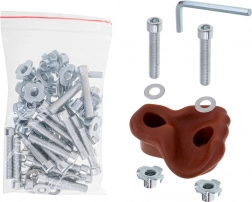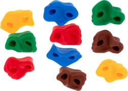 Monteringen er nem og hurtig – i pakken er der et komplet sæt monteringstilbehør. Grebene har en grov overflade for et fast greb og afrundede kanter for øget sikkerhed. Ideelle til hjemme-klatrevægge, havelegepladser og børneværelser.