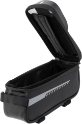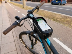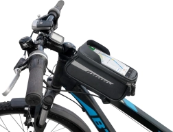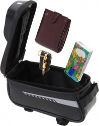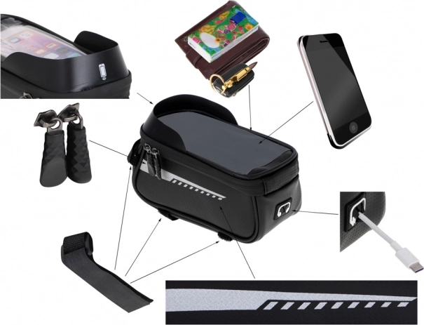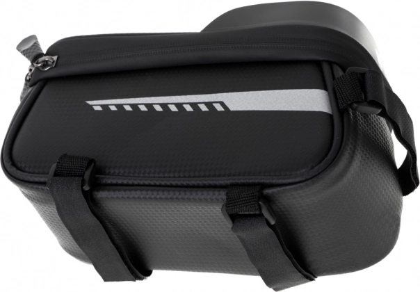 Dens kompakte dimensioner generer ikke under kørslen. Lommen lukkes med lynlås, hvilket sikrer, at intet falder ud, selv i skarpe sving. Taskens montering er sikret med tre velcro-stropper: en til styret og to til cykelrammen, hvilket garanterer perfekt stabilitet under kørslen. Den passer til enhver cykelmodel uanset mærke.