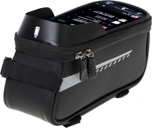Denne vandtætte cykeltaske er det perfekte tilbehør til enhver cyklist, der leder efter en funktionel og holdbar løsning til lange ture. Den er udstyret med en specialplads til telefonen, så du kan let bruge den som navigation eller musikafspiller under kørslen. Holderen er designet, så telefonen forbliver synlig og tilgængelig gennem det gennemsigtige og vandtætte vindue.