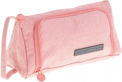 Det robuste tekstilmateriale beskytter indholdet, lynlåsen glider let, og den sideplacerede strop gør det nemt at hænge eller bære.