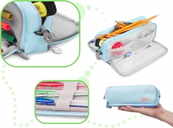 Praktisk og rummeligt skoleetui 3-i-1 med tre separate lynlåsrum hjælper med at holde orden i skoleartikler og kosmetik. Takket være de kompakte mål passer det let i rygsæk eller håndtaske og kan også bruges som rejsepose eller pung. Fremstillet af slidstærk polyester for lang levetid og overskuelig organisering af hverdagens småting.