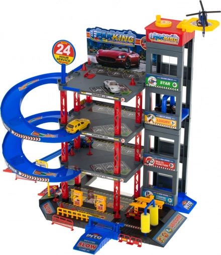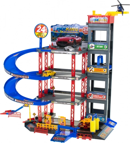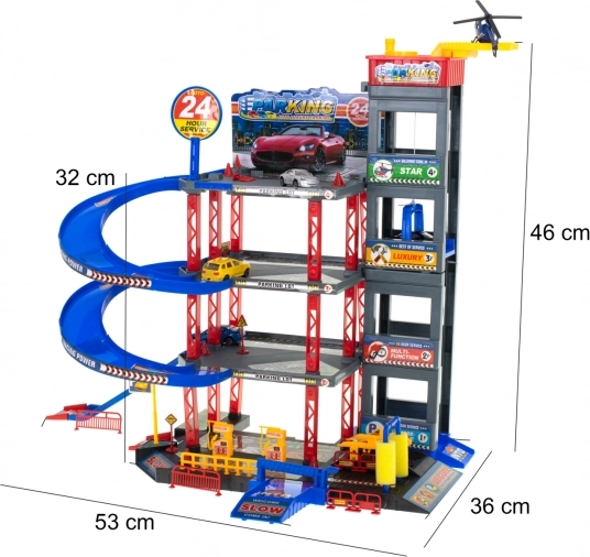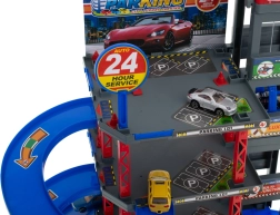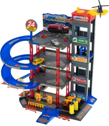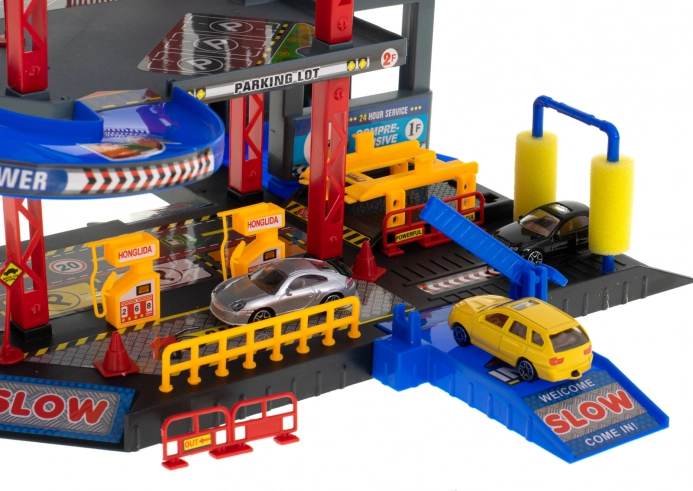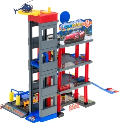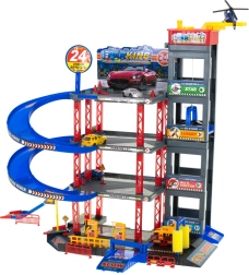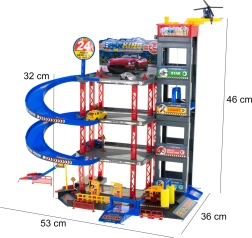 Etageparkeringshuset er udstyret med flere niveauer til parkering og leg, hvilket gør det muligt at placere og opbevare ikke kun de biler, der følger med sættet, men også andre køretøjer, dit barn har. Den manuelt betjente elevator giver en realistisk oplevelse, mens benzinstationen og vaskehallen tilfører interaktive muligheder.