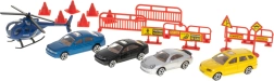 Skilte, barrierer, ramper og klistermærker giver realisme, mens forskellige biler og en helikopter vækker hver leg til live. Sættet hjælper med at udvikle finmotorik samt hånd-øje-koordination.