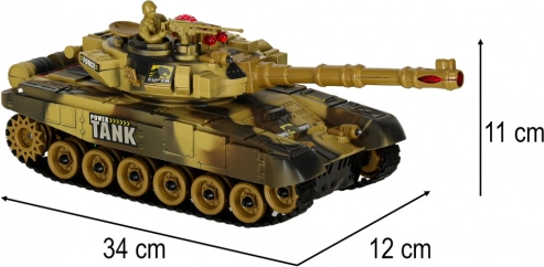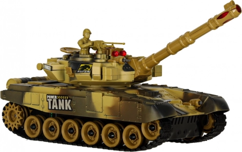 RC‑kampvognen i ørkenudgave tilbyder jævn kørsel frem/tilbage, vending på stedet og et drejeligt tårn 180° til hver side (i alt 360° skydesektor). Bløde gummibælter giver godt greb på forskellige underlag. Ved skud simulerer kampvognen realistisk rekyl og ledsagende motor- og skudlyde.