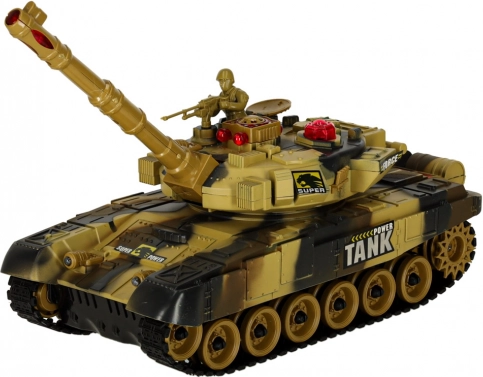 Kampene bliver endnu mere intense takket være træfningsindikator – ved et præcist træf slukker en af modstanderens bageste indikatorlamper. Efter tre træffere er modstanderens kampvogn midlertidigt ude i ca. 30 sekunder, og duellen kan starte forfra. Effektfuld LED‑belysning i tårn og forlygter kommer særlig til sin ret i skumringen. Den åbne luge gør det muligt at placere den medfølgende tankkommandør med maskingevær.