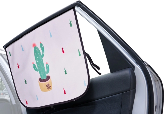 En stilfuld magnetisk solskærm til bilens siderude med kaktusmotiv sikrer effektiv afskærmning, beskyttelse mod UV-stråling og reducerer opvarmning af kabinen. Takket være 5 stærke magneter er monteringen hurtig og uden boring, det dobbelte lag materiale giver fuldstændig mørklægning og er nemt at rengøre.
