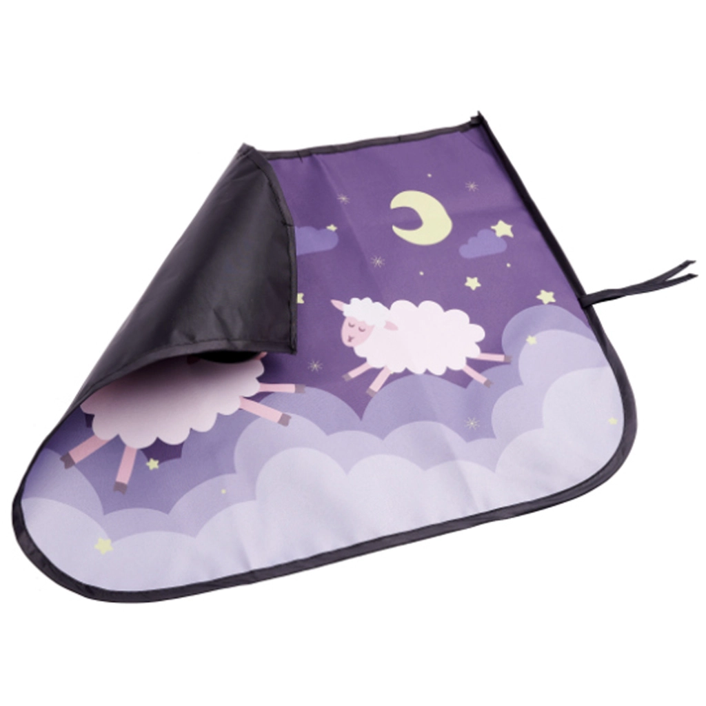 En stilfuld og funktionel skærm med fåre-motiv, der beskytter bilens interiør mod overophedning og børn mod blænding. Dobbeltlags design sikrer høj grad af mørklægning og et behageligt halvmørke til afslapning under kørslen.