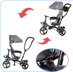 Sædet kan vendes både mod og med kørselsretningen. Takket være styrestangen og friløbet kan du let overtage styringen og tilpasse turen til barnets aktuelle behov.