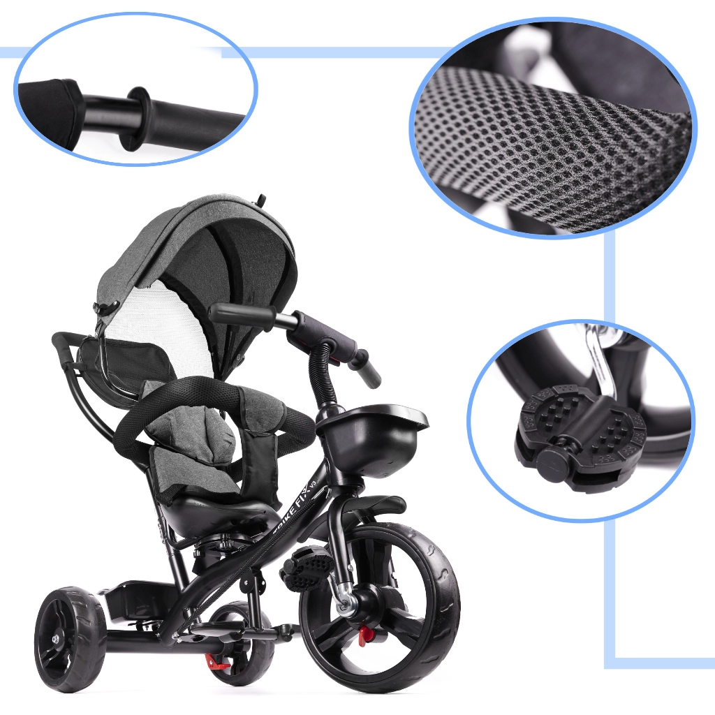 TRIKE FIX LITE er en moderne trehjuler til børn, der kan sidde selv, og som nemt tilpasses barnets alder og færdigheder. Takket være mulighed for montering og afmontering af enkelte dele fungerer den først som en komfortabel “spadser”-trehjuler med styrestang, senere som et selvstændigt første cykeltrin.