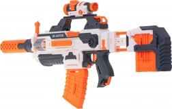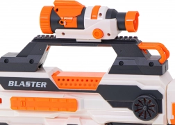 Pakken indeholder alt til lange kampe: 30 skumpile, 2 magasiner (6 og 10 skud), skulderkolbe med holder til ekstra magasin, lyddæmper/løb for mere stabil skydning og en funktionel lygte. Leg med blasteren udvikler koordinering, finmotorik ved magasinladning og teamsamarbejde.