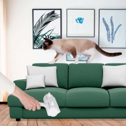 Den dobbeltsidede renseflade og den indvendige kammer fjerner effektivt hår og fnuller fra tekstiler – uden at efterlade klæbrige rester.