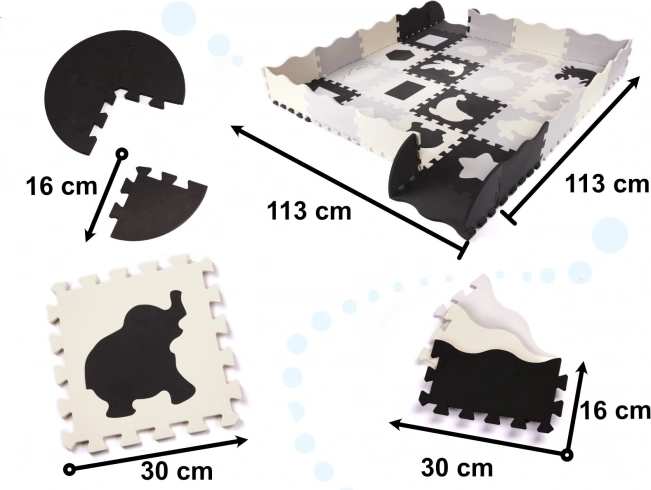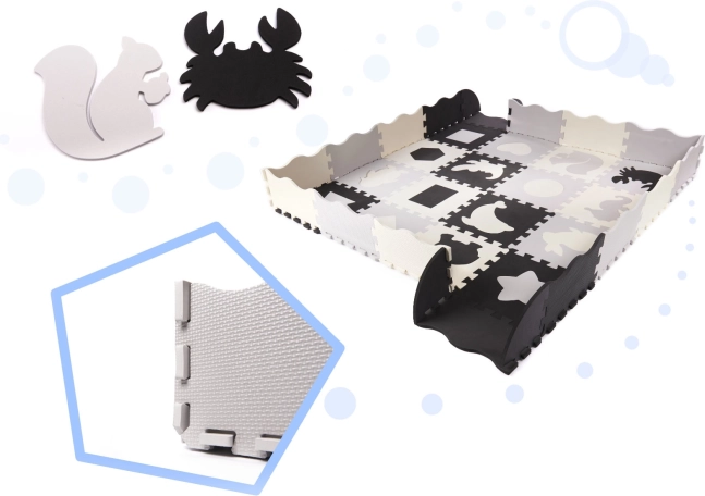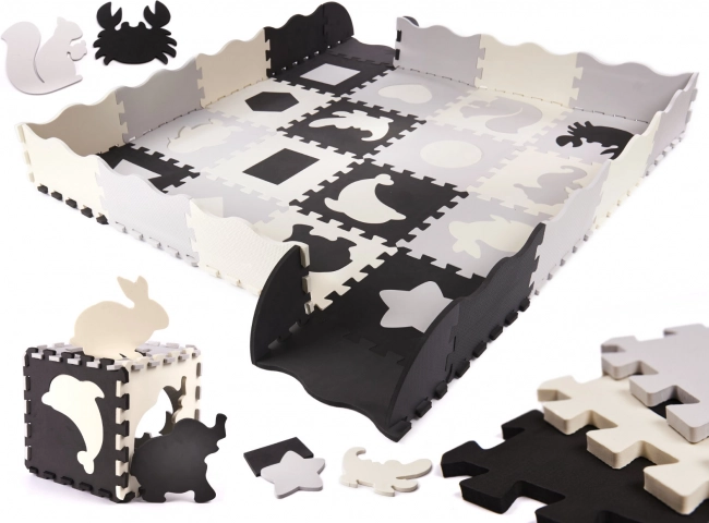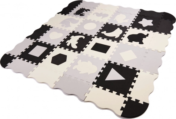 Oplev uendelige mængder af sjov med uddannelses puslespilsmåtten! Denne store skummåtte med aftagelige elementer i kontrastfarver er perfekt til små børn, der udforsker verdens former og farver.