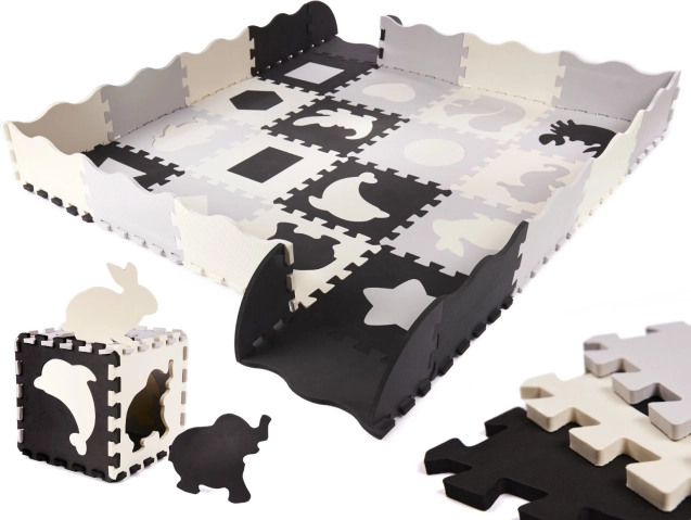 Stor sjov er garanteret. Puslespillet vokser med dit barn og kan samles til en måtte eller en indhegning, som bliver en favorit legeplads for enhver lille opdagelsesrejsende.