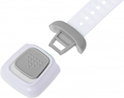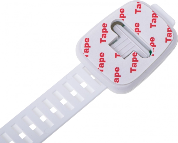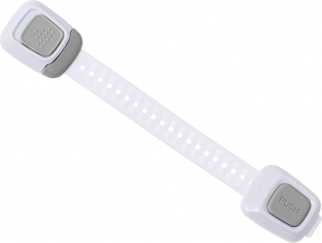 Låsen er designet til at passe til forskellige typer skabe og skuffer. Den let justerbare længde sikrer universel anvendelse. Ud over at øge børns sikkerhed bidrager den også til at holde orden, fordi den forhindrer børn i at tage indholdet ud af skabene. Om nødvendigt kan låsen nemt fjernes ved at opvarme klæbemidlet, for eksempel med en hårtørrer.
