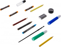 Sættet inkluderer pensel, blyant, blyantspidser, viskelæder og lim. Hvert element er omhyggeligt placeret og klar til brug, hvilket gør dit arbejde lettere.