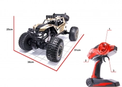 Nyd actionfyldt kørsel med en imponerende RC-model på 51 cm i længden. Takket være 4x4-træk, store hjul og et fleksibelt chassis klarer den let huller, sten og højt græs. Den ergonomiske pistolcontroller ligger godt i hånden og giver præcis styring i terrænet.