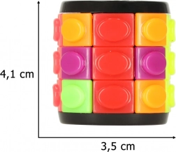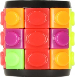 Oplev en spændende udfordring i et kompakt format. Cylindrens roterende ringe gør det muligt at flytte farvede brikker gnidningsfrit, og takket være en ledig plads i én række kan du skabe nye kombinationer. Målet er at arrangere farverne i rækker – en opgave, der virker enkel ved første øjekast, men hurtigt bliver til fængslende hjernetræning i timevis.