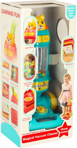 Styrk børns fantasi og sans for orden med en interaktiv børnestøvsuger. Takket være lys- og lydeffekter, der minder om et rigtigt apparat, får børnene let lyst til at lege hus. Inde i kammeret svæver farvede kugler, når den tændes, hvilket giver legen dynamik og visuel attraktivitet.