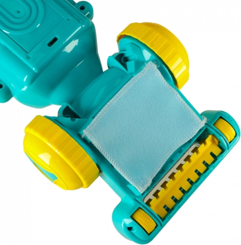 Der medfølger en elektrostatisk klud, som faktisk opfanger små urenheder fra gulvet, så legen også får en praktisk dimension. Legetøjet udvikler finmotorik, koordinationsevner og lærer børn ansvar for orden gennem leg og glæde.