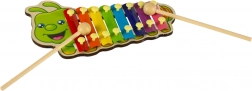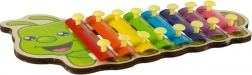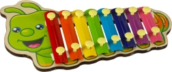 Denne farverige børnexylofon er et ideelt første musikinstrument. Otte stemte metalplader i regnbuefarver vækker naturlig nysgerrighed og udvikler musikalsk hørelse og rytmesans på en legende måde. Et let slag med køllen frembringer en ren tone – slagstyrken påvirker lydstyrken.