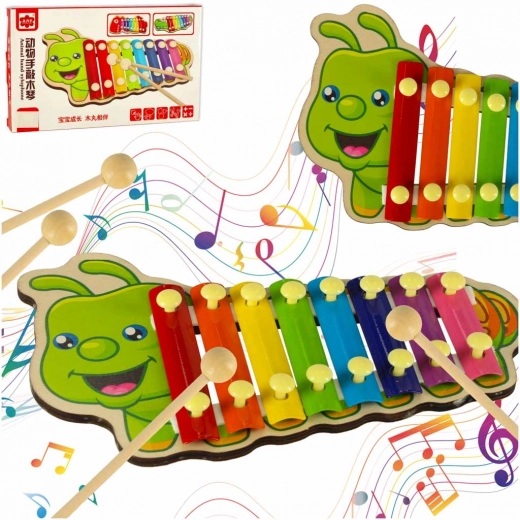 Larvedesignet fanger øjet ved første blik og indbyder til leg i timevis. Instrumentet styrker koncentration, tålmodighed og kreativitet, og hjælper samtidig børn med at kende farver og sammensætte enkle melodier.