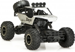 Kraftfuld offroad RC-model i skala 1:12 med permanent 4x4-træk, metalkonstruktion og uafhængig fjederaffjedring, klarer stenede stier, sand og græs. To motorer på akslerne sikrer stærkt træk og greb, de store hjul udjævner ujævnheder, og 2,4 GHz-controlleren giver stabil rækkevidde op til 50 m.