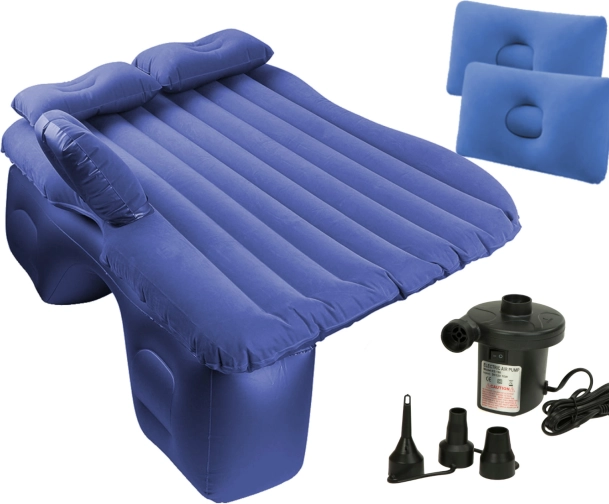 Oppustelig bilmadras 130×80 cm med støtte, elektrisk pumpe, 2 puder og taske. Behagelig søvn i bilen, bæreevne op til 300 kg.