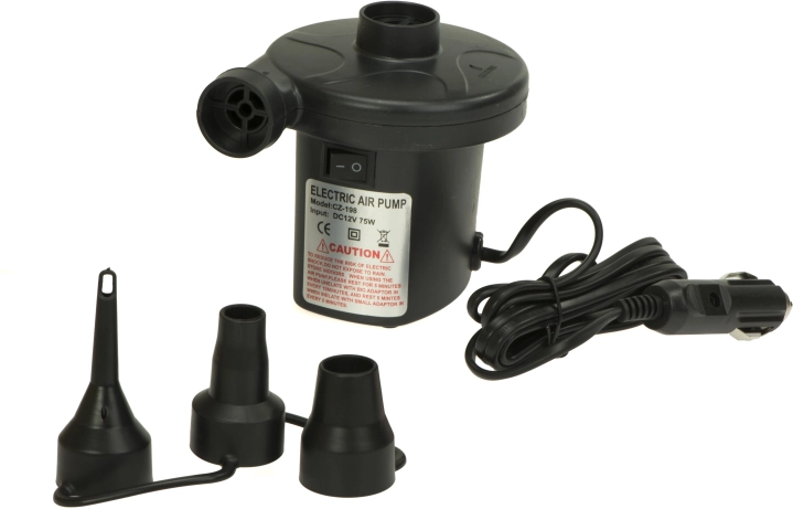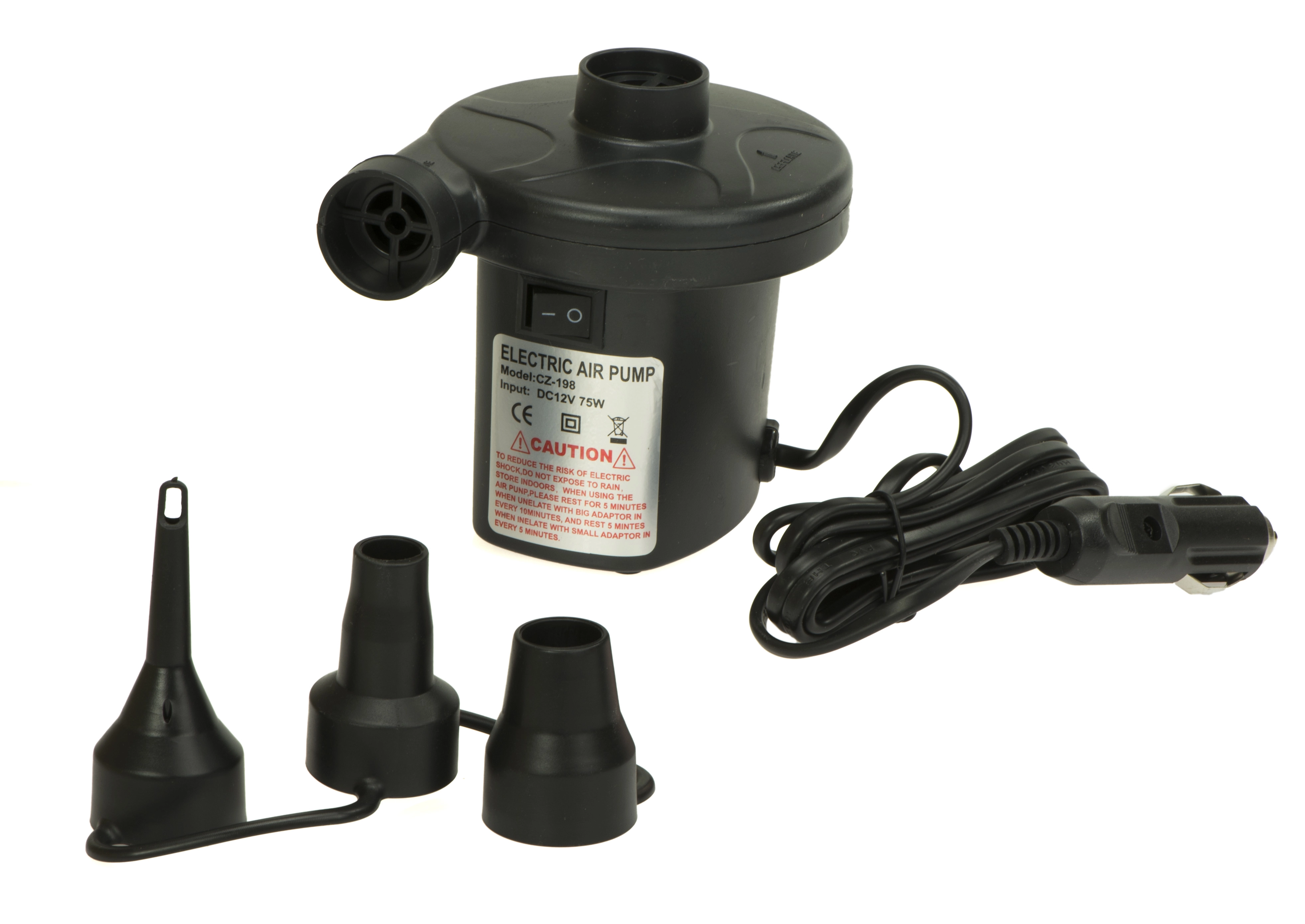 Den aftagelige støtte gør det muligt at bruge madrassen separat – på græsset eller ved vandet. Hurtig oppumpning og tømning sikres af den medfølgende 12 V elektriske pumpe til cigarettænderen. Hele sættet opbevares nemt i den praktiske taske.