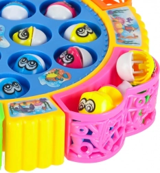 Tænd for det roterende bassin, gør stængerne klar, og begynd at fiske! Når platformen drejer, åbner og lukker fiskene munden skiftevis, så der kræves præcis timing og fingerfærdighed. Spillet er ideelt til 1–4 spillere, og takket være den glade musik og de stærke farver vil børnene elske det med det samme.
