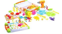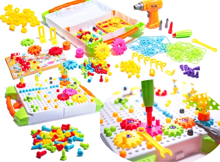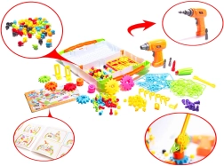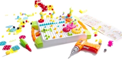 Denne smarte aktivitetsæske forener leg med læring. Ved hjælp af den batteridrevne børneboremaskine eller skruetrækkeren kan børnene let skrue de farvede skruer i den perforerede plade og samle forskellige mønstre, dyr eller køretøjer. De klare farver understøtter læring af farver og former, mens selve skru arbejdet styrker fingerfærdighed og hånd-øje-koordination.