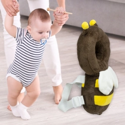 Den lette og komfortable pude tages på som en rygsæk og giver tryghed ved de første skridt. Den bløde polstring absorberer stød effektivt og mindsker risikoen for, at hovedet slår mod det hårde gulv. Takket være de justerbare stropper kan den nemt tilpasses barnets højde.
