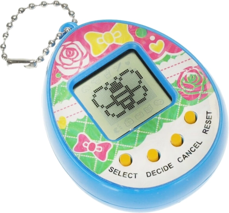 Det sjove elektroniske Tamagotchi-spil formet som et æg bringer op til 168 virtuelle kæledyr, som børn kan passe, som var de rigtige. Takket være de kompakte mål og den praktiske kæde er det ideelt på farten, har lydeffekter og hjælper med at udvikle ansvarlighed og følelsesmæssig intelligens.