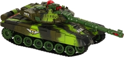 Bæltechassis med bløde gummibælter giver godt greb, det roterende tårn drejer op til 300°, og den infrarøde kanon muliggør sikker skydning på kort afstand. Effektfuld LED-belysning og rige lydeffekter fra motor, kanon og maskingevær forstærker atmosfæren af en ægte slagmark. Kvalitetsplast og omhyggelig udførelse holder til måneders leg.